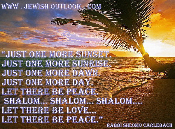 Peace comes from such a high place that it is not given to one person. I can’t say to GYd, “Please give me peace. I don’t care about the rest of the world.” Peace has to be between me and the world, between me and people, between me and somebody else.